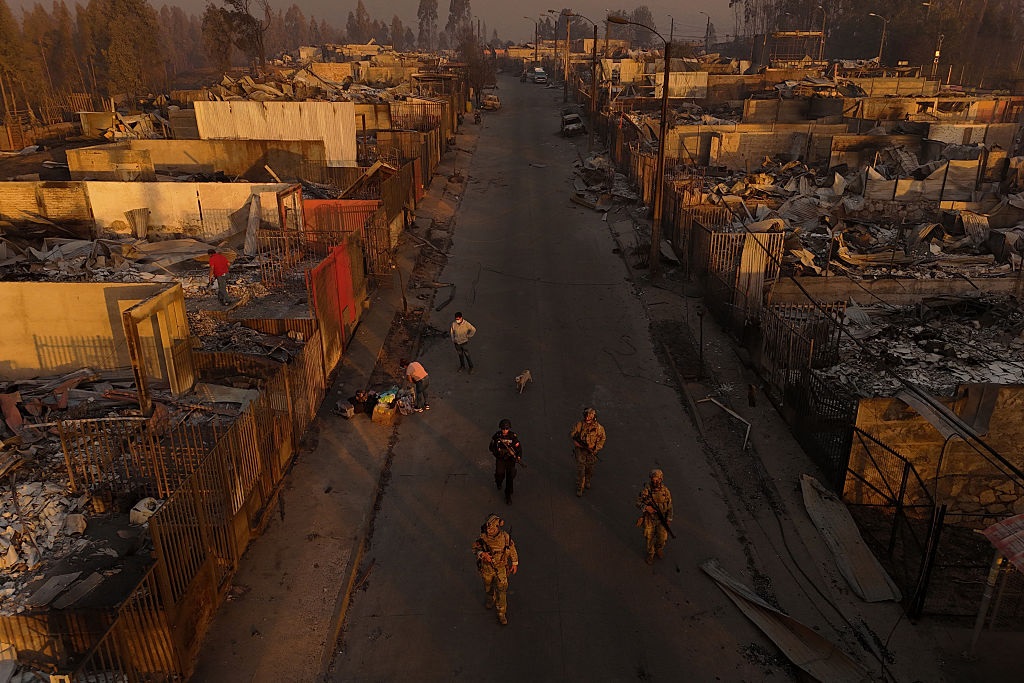 Втім, завдання ускладнюють сильний вітер та екстремальна спека: температура піднімається до 38 градусів. У Чилі зараз розпал літа, і полум’я швидко поширюється по висохлих лісах і полях, перекидаючись на житлові квартали.